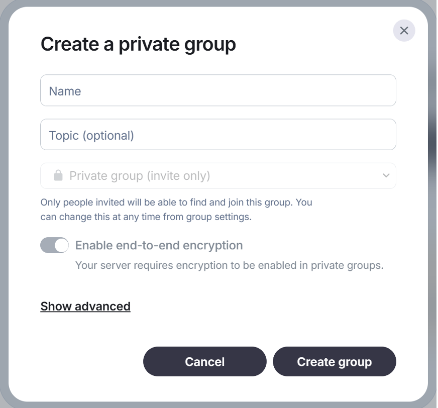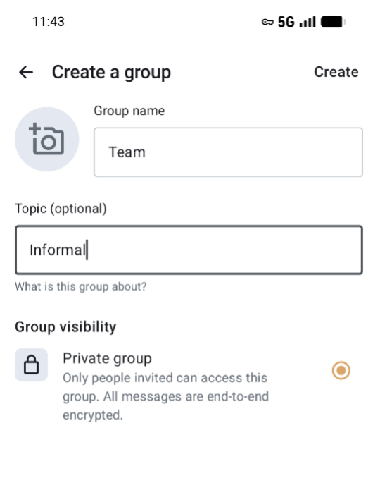 New group to start a new group. - In Create a private group give a Name to the group and click Create group. You can Add a topic to help people know what it is about.