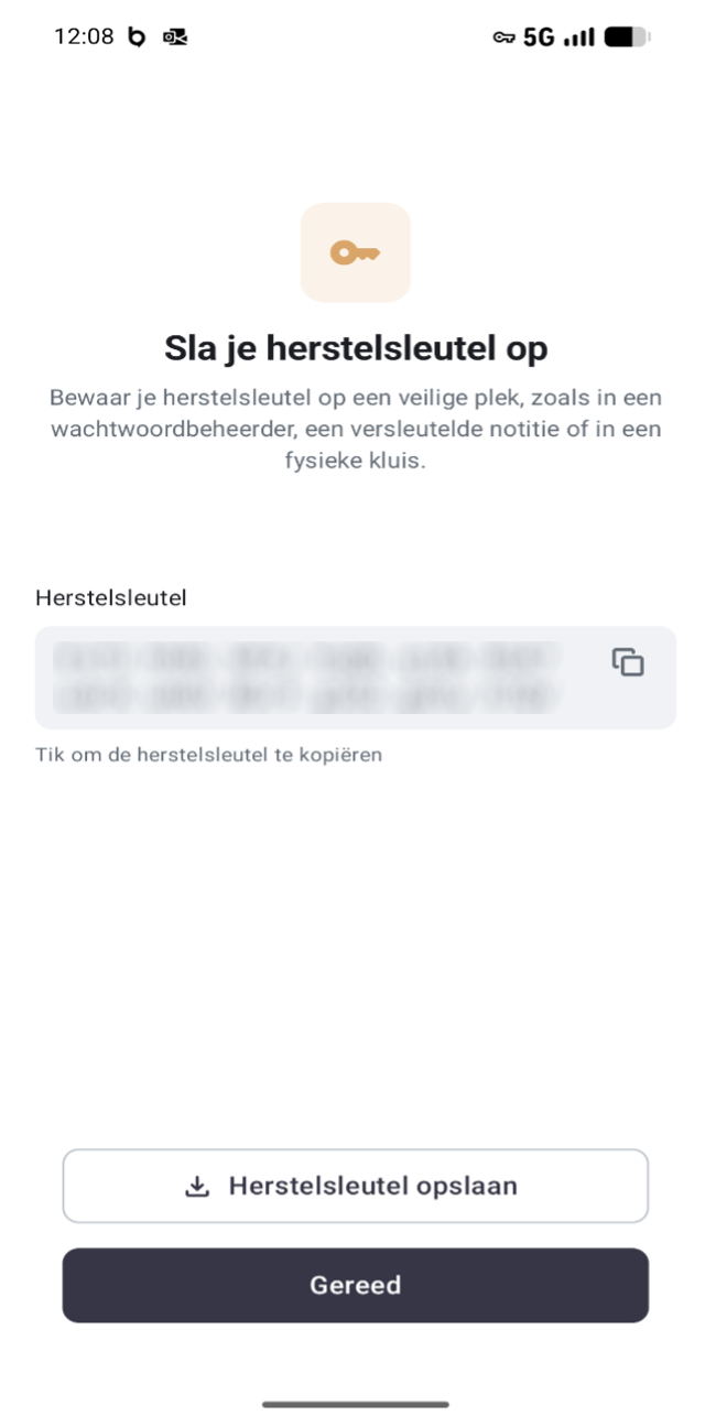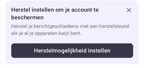 Bij het aanmaken van uw account, kan u uw "Herstelsleutel" aanmaken. Bewaar deze op een veilige plaats, idealiter niet enkel op uw telefoon. Enkel en alleen met deze "Herstelsleutel", kan u uw berichten terugkrijgen mocht u uw account opnieuw moeten activeren. Deze "Herstelsleutel" kan u aanmaken onder het onderdeel "encryptie" in de applicatie.