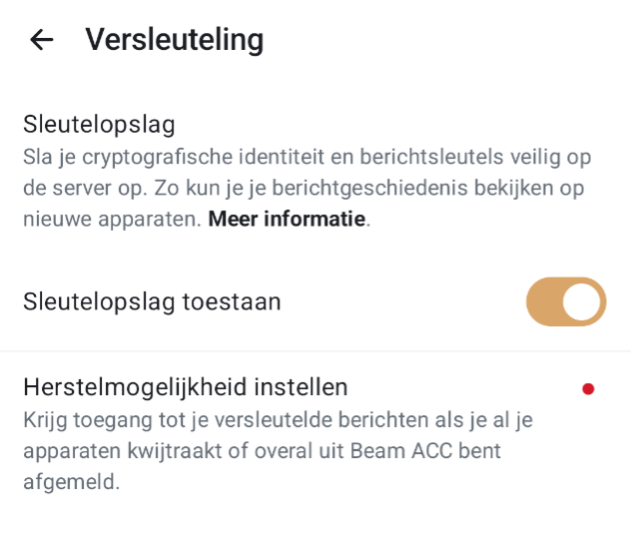 Wat is de Beam "Herstelsleutel"?